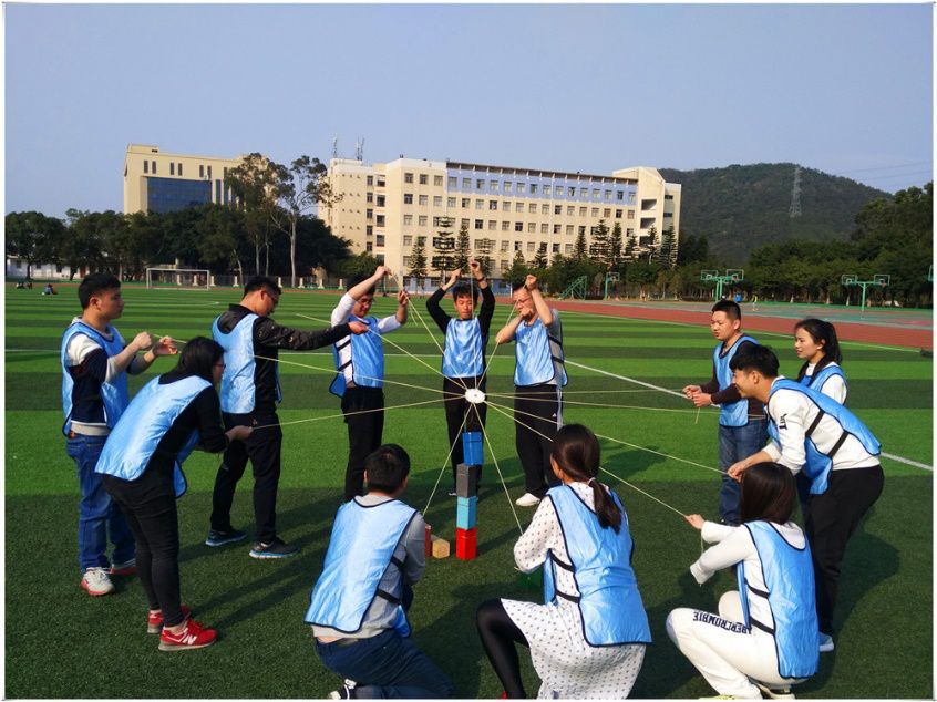 團(tuán)隊(duì)成員手拉繩子,通過配合協(xié)作使在地下放置不規(guī)則的木頭依次按照順序累積一定的高度,移動(dòng)運(yùn)行過程中不允許掉落。