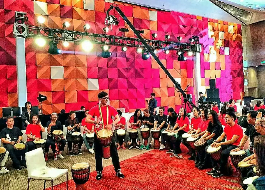 同步:通過學(xué)習(xí)和表演非洲鼓來建立團隊一致的技巧和態(tài)度,大家一起學(xué)習(xí),一起行動,奏出最美的音樂!